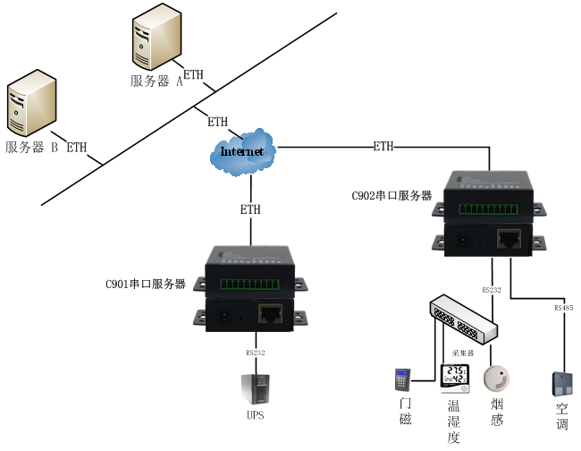 C901/2系列串口服务器是基于自主软件研制而成的高集成度串口服务器设备,主要完成1~2路串口数据(RS232/RS422/RS485)到一路以太网数据之间的转换。其拥有超高的性价比和良好的稳定性,可以广泛应用于各大运营商及行业用户的机房环境监测及各种工业数据采集领域,诸如工厂自动化监控、医疗医药自动化、机电仪器联网控制、人事考勤网络控制、安保/门禁网络控制等方面。